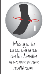 La guêtre de cheville, associée à une sangle élastique réglable, maintient le pied à angle droit et limite le risque d’accrochage de l’avant-pied au sol.